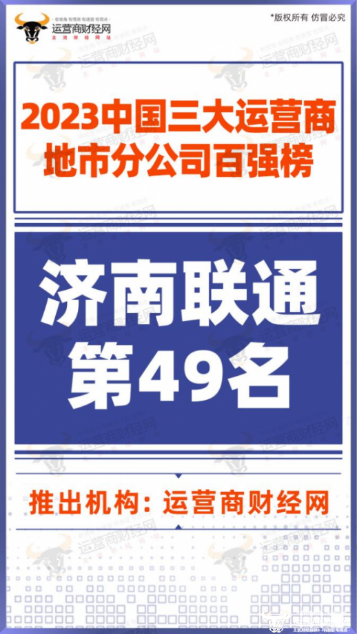 此外,在国内地市分公司中,济南联通也毫无悬念的保持领先位置。根据运营商财经网打造的“2023三大运营商地市分公司百强榜”显示,其高居第49名,而这一排名中包含了中国移动、中国电信多家大型地市分公司,济南联通的这一排名已属相当不易。