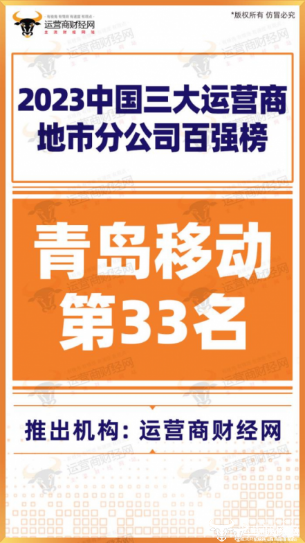 而在三大运营商全国所有地市分公司中,青岛移动排名第33名。