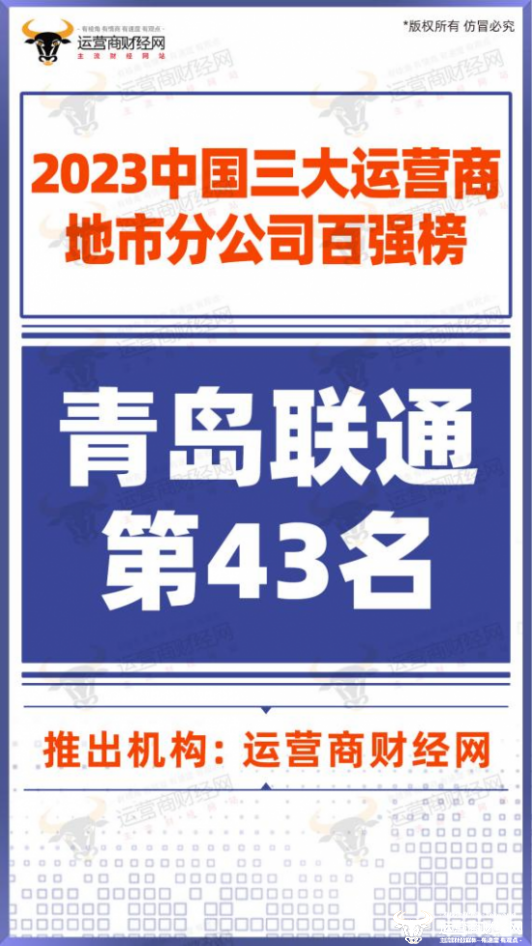 而在“2023三大运营商地市分公司百强榜”中,青岛联通的排名同样不差,位列第43名。虽与集团中的排名有所差距,但这是在中国移动、中国电信旗下地市分公司混合起来的排名,友商本来在收入规模上就占据一定优势。