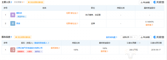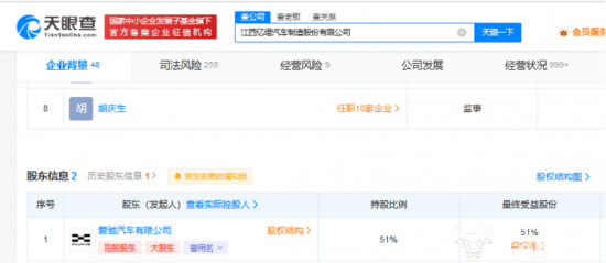 传言并非空穴来风。天眼查APP显示,詹耿武曾担任江西爱亿科技有限公司执行董事兼总经理。江西爱亿科技有限公司由江西亿纬汽车制造股份有限公司百分百持股。而爱驰汽车有限公司持有江西亿纬汽车制造股份有限公司51%的股份。