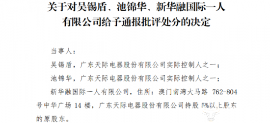 值得一提的是,就在去年年初,天际股份因在信息披露、财务核算、内幕信息管理等方面存在违规行为被责令改正,吴锡盾被出具了警示函。