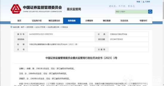 而这是有关国民技术在7月的第二起处罚决定书。在7月4日,余鹏、王佳、汤佩芬因涉嫌过国民技术内幕交易,违反了证券法,重庆证监局收取违法所得并进行罚款,共计190万。