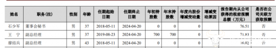 与此同时,公司副总王宁税前薪酬从2021年的71.83万元上涨到2022年的143.04万元;副总石少军税前报酬由2021年的76.51万元,涨至2022年的176.43元;副总经理廖结兵税前薪酬从2021年的76.02万元涨到了2022年的136.62万元。