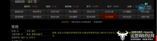 如此看来,焦艳进入公司已有二十多年了,任董秘之职也已逾十五年,但竟未升职,那么她之后还会升任吗?对此,运营商财经网就不得而知了。