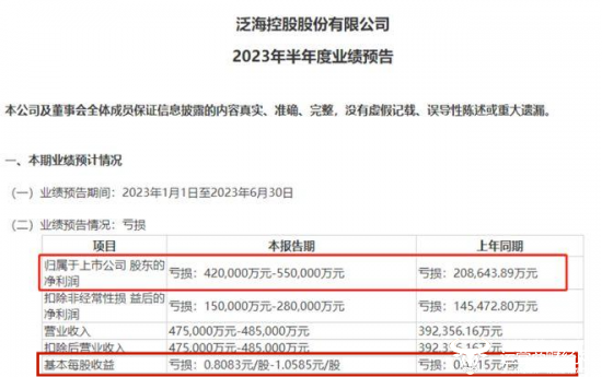 7月15日,泛海控股发布业绩预告,预计2023年1-6月归属净利润亏损42亿元至55亿元,基本每股收益亏损0.8元至1.05元。