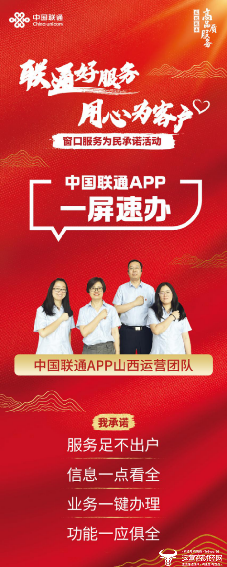 自中国联通携手中国质量万里行促进会联合发布“联通好服务 用心为客户”窗口服务为民承诺活动以来,山西联通积极贯彻落实集团服务理念,承接集团服务承诺,结合本地实际,面向营业厅、智家工程师、政企客户经理、10010热线、中国联通APP五大服务窗口作出五项承诺,全面锻造高品质服务,打造服务竞争新优势,擦亮山西联通窗口服务形象。