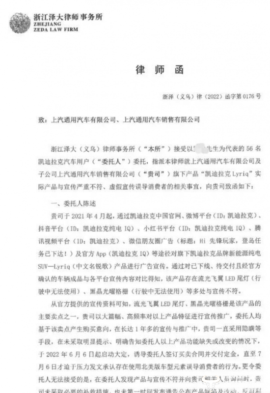 运营商财经网注意到,2022年7月,曾有200多名凯迪拉克LYRIQ大定车主联合投诉凯迪拉克虚假宣传。