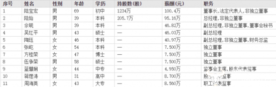值得一提的是,陆灿实际上是宏昌科技董事长陆宝宏的儿子。根据东方财富网公开的薪酬信息所示,陆灿的年薪为95.16万元,其父陆宝宏的年薪为100.4万元。可以看出他们的薪酬要比其他高管高出不少。
