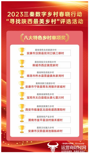 近日,由陕西省乡村振兴局指导,中国电信陕西公司、陕西广电融媒体集团共同主办的2023三秦数字乡村春晓行动系列活动之一的“寻找陕西最美乡村”活动评选结果正式揭晓。