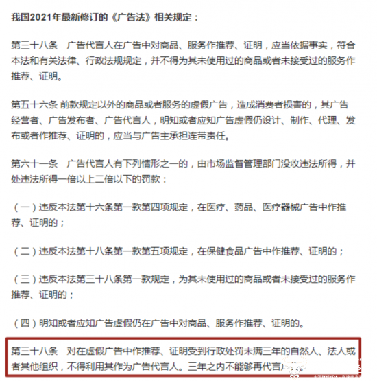根据我国2021年最新修订的《广告法》规定,景甜三年之内不能够再代言广告。
