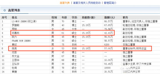 东方财富网信息显示,陈英去年获得的薪酬为57万元,从公司整体的薪酬水平来看,她的薪酬还不错,比副总郑惠彬的薪酬还高一些,郑惠彬的薪酬才42.43万元,陈英的薪酬比他高出14.5万元,还是有一定差距的。