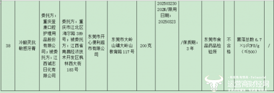 据广东省药监局当时发布的2023年第15号通告,广东省化妆品抽样检验信息结果(2022年底9期)显示,一款批号/限用日期为“202503230202N/限用日期20250323”的冷酸灵抗敏牙膏,在抽查中菌落总数不合格。委托方为重庆登康欧强护理用品股份有限公司,被委托生产方为江西诚志日化有限公司。