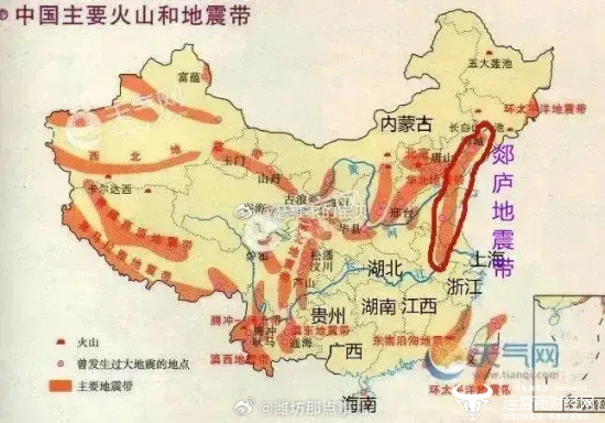 这次发生地震的德州市平原县应该处于郯城——庐江断裂带,郯城在山东,庐江在安徽,可见这条断裂带之长,往北一直延伸到俄罗斯,长达2000多公里,著名的唐山大地震、邢台大地震、辽宁海城大地震等都在这个断裂带上。