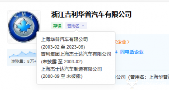 天眼查APP显示,浙江吉利华普汽车有限公司曾用名为上海华普汽车有限公司。