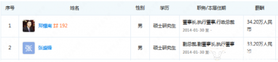 因他刚来公司不久,公司暂未披露其薪酬信息,对此运营商财经网也不得而知。但据企查查显示,董事长郑耀楠的薪资为34.2万元,副董事长兼副总裁张盛锋的薪资为33.2万元,不知道蔡玮轩会获得多少。