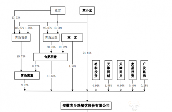 事实上,老乡鸡是一个典型的家族企业,招股书显示,束从轩、张琼、束小龙、董雪、束文5名家族成员为老乡鸡的实际控制人。而束从轩和张琼是夫妻关系,束小龙和董雪是夫妻关系,束小龙和束文是束从轩的子女,家族合计拥有公司91.32%的股份。