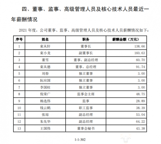 据招股书披露的数据显示,朱先华2021年的薪酬为64.22万元,比公司其他的副总经理的薪酬都高,但差距并不算大。