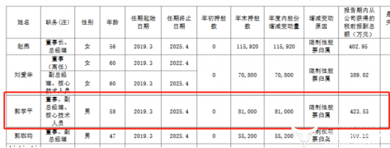 后来,郭学平认识了张燕,并把公司低价受让给了她,自此专心从事科学研发。自2000年起,他一直在公司担任首席科学家之职,直至2019年3月5日,他又获任成为公司副总经理,供职至今。