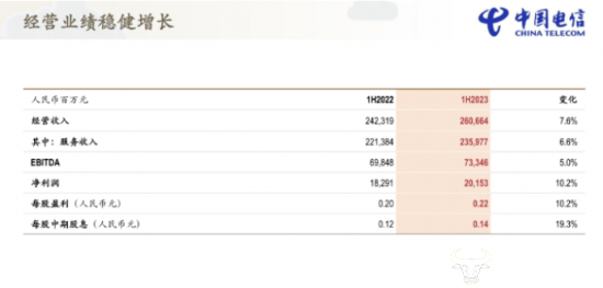 据了解,中国电信今年上半年实现营业收入2586.79亿元,同比增长7.7%。而在2022年上半年中国电信营业收入是2402亿元,同比增长10.42%。虽然增幅有所下降,但是依然是稳中有升。