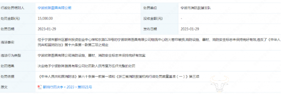 值得一提的是,企查查APP显示,就在今年年初,欧琳厨具因为物流中心防火卷帘破损,消防设施、器材、消防安全标志未保持完好有效,违反了《中华人民共和国消防法》第十六条第一款第二项的规定,被罚款1万5千元。