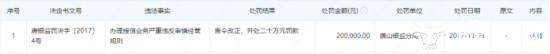 值得一提的是,在张玉龙管理唐山分行期间,该行曾因办理授信业务严重违反审慎经营规则,被唐山银监分局责令改正,并对其处以罚款20万元。