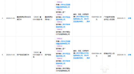 对此,运营商财经网注意到,有媒体分析时提及2020年的一个立案信息。天眼查APP显示,2020年1月、2月、4月,深圳市爱出行汽车租赁有限公司的四则法律诉讼信息原告都是深圳比亚迪国际融资租赁有限公司。