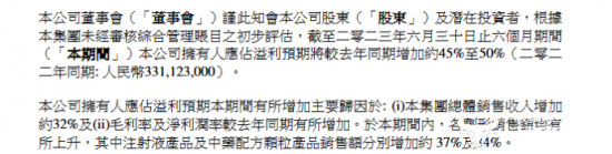 据悉,神威药业上半年公司拥有人应占溢利预期将较去年同期增加约45%至50%。期内集团总体销售收入增加约32%,毛利率及净利润率较去年同期有所增加。于本期内,各剂型销售额均有所上升,其中注射液产品及中药配方颗粒产品销售额分别增加约37%及34%。