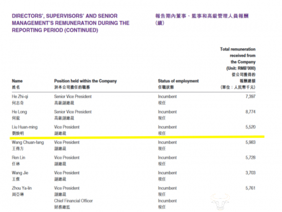 比亚迪官网显示,刘焕明现任副总裁、审计监 察处总经理及比亚迪慈善基金会理事,同时分管比亚迪知识产权及法务处、信息中心等部门。2022年刘焕明薪酬为552万,是副总经理中薪酬最低的。