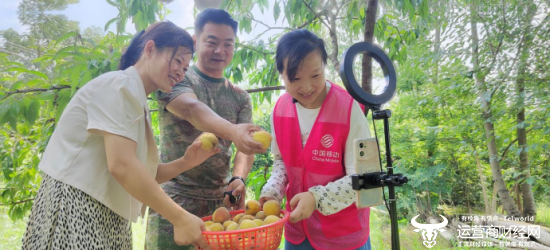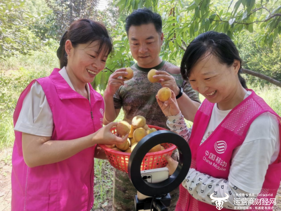 (湖北移动工作人员帮助果农开展线上直播销售活动)