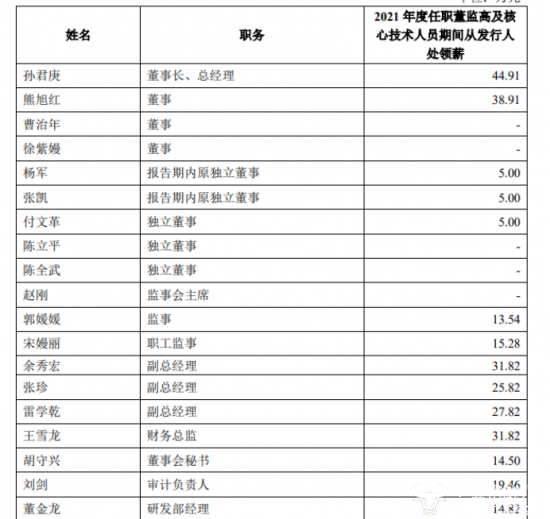 据招股书显示,孙君庚去年从公司获得的报酬为44.91万元,虽然比公司其他高管的薪酬都要高,但并不算多。