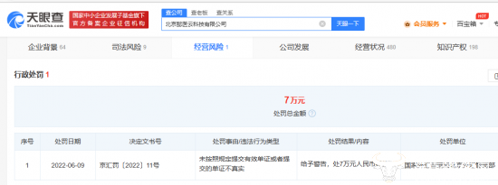 值得注意的是,天眼查信息显示,医渡科技子公司北京懿医云科技有限公司在2022年6月9日收到京汇罚〔2022〕11号罚单,该公司因未按照规定提交有效单证或者提交的单证不真实,被国家外汇管理局北京外汇管理部给予警告,并罚款7万元。