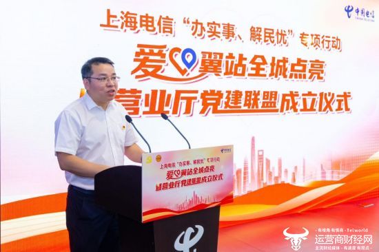 今天,上海市总工会、上海电信在全市电信营业厅举行“爱心翼站”全城点亮营业厅党 建联盟成立仪式,上海电信300余家营业厅已全部设立“爱心翼站”,成为首家全量营业厅建成“户外劳动者服务站点”的单位,为“工会服务站点双15工程”助力。同步,上海电信营业厅党 建联盟成立,公司党员、专家共同组成团队服务广大市民,弘扬人民邮电为人民的精神,共同打造上海更满意的服务窗口。