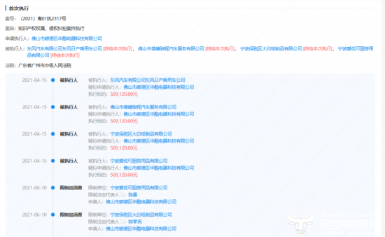 该案件是在2018年发生的一起侵害发明专利权纠纷案,经2021年广东省广州市中级人民法院判决首次执行,东风汽车有限公司东风日产乘用车公司被执行509120元;今年7月28日恢复执行,东风日产乘用车公司被执行373383元。