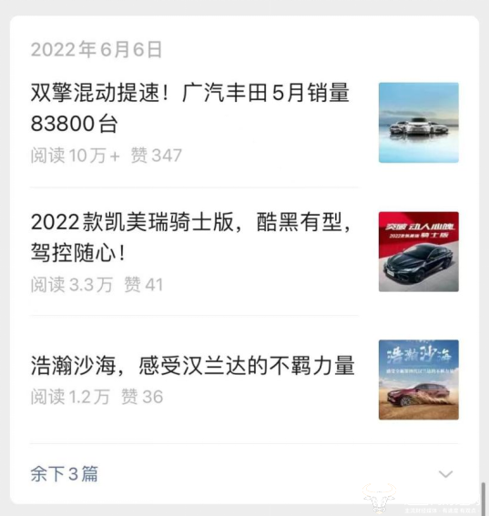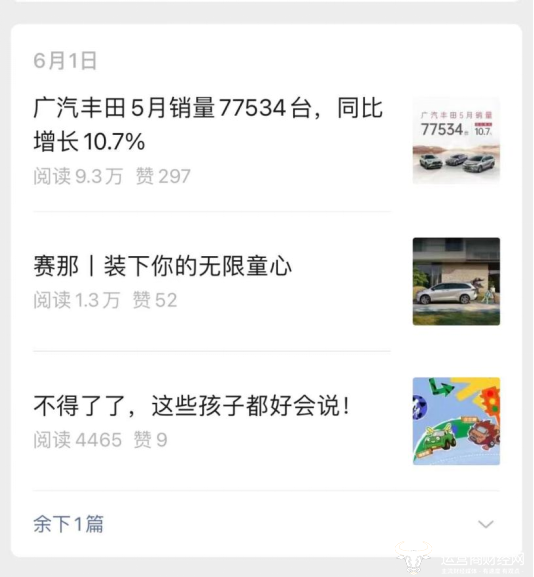 广汽丰田的微信公众号不知道是否是市场营销部分管,写这种一片赞歌的文章的数据到底从何而来,广汽丰田的市场营销部没有回应。