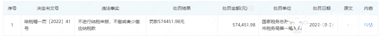值得一提的是,在去年10月31日,建行黑龙江省分行因”不进行纳税申报,不缴或者少缴应纳税款“被国家税务总局哈尔滨市税务局第一稽查局罚款574451.98元。