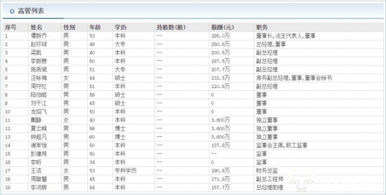 据东方财富网显示,去年赵怀球的年薪为250.8万,仅次于董事长谭新乔,在公司高管中位居第二,还不错。