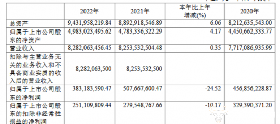 据悉,昆药集团2022年度实现营收约82.82亿元,同比上升0.35%;归属于上市股东的净利润约3.83亿元,同比下降24.52%;归属于上市公司股东的扣除非经常性损益的净利润约2.51亿元,同比下降10.17%。