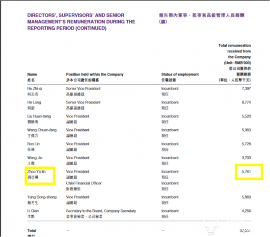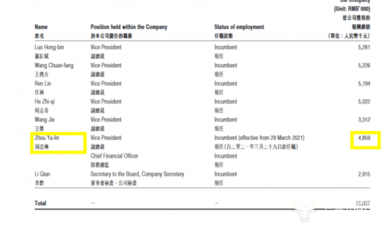 据了解,周亚琳是从2021年3月29日开始担任比亚迪股份有限公司副总裁,兼任比亚迪股份有限公司财务总监。其2021年薪酬为485.9万元;2022年披露薪酬增长到576.1万元,一年中增长了90万元出头。但是这个数目在比亚迪股份有限公司副总裁中不算高。