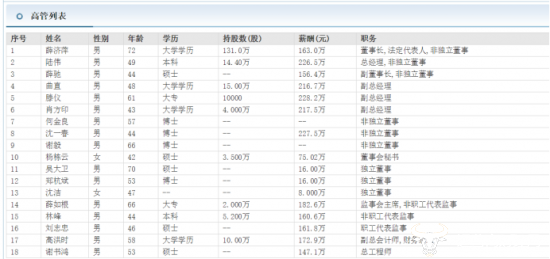 值得一提的是,据东方财富网显示,滕仪去年的年薪为228.2万,在公司高管中薪酬是最高的,高于董事长薛济萍的薪酬163万。看来滕仪在公司是比较受重视的,当然这与滕仪对公司的贡献离不开关系。