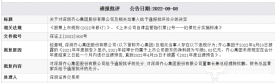 因此,深交所对奇心集团及董事长兼总经理陈钦鹏、财务总监黄家兵给予通报批评的处分。
