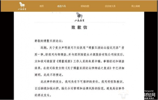 对此,博鳌亚洲论坛秘书处严正声明,论坛并未给八马茶业公司的任何产品任何授权或许可,并对该公司这一行为进行了强烈谴责。