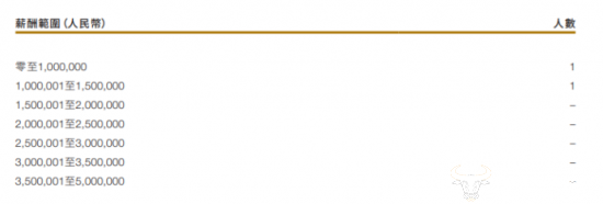 据公司年报显示,去年公司除去董事外只有两名高管,分别熊鑫升和公司秘书陈奕斌,两人的薪酬范围在100万到150万,以及150万到200万之间,但至于各自对应的范围是哪个,这个就无从得知了,不过无论是哪个,薪酬都还不错。