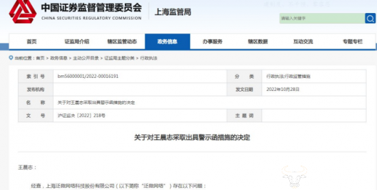 值得一提的是,在2022年,中国证券监督管理委员会上海监管局披露了关于对王晨志采取出具警示函措施的决定。