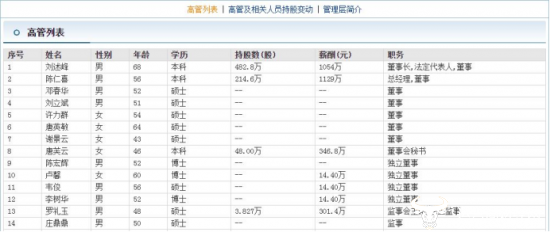 据东方财富网显示,刘述峰去年的年薪为1054万,公司副总陈仁喜比刘述峰的薪酬更高为1129万。十分可观。