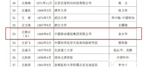 其次,这也是三大运营商中为数不多入围中国工程院院士有效候选人名单的,王晓云可谓替中国移动争光了。