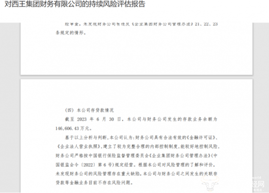 8月25日,西王食品发布了对西王集团财务有限公司的持续风险评估报告,报告显示,截至2023年6月30日,西王食品与财务公司发生的存款业务余额为146,606.43万元。