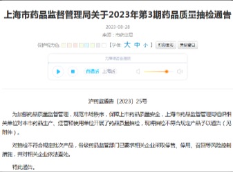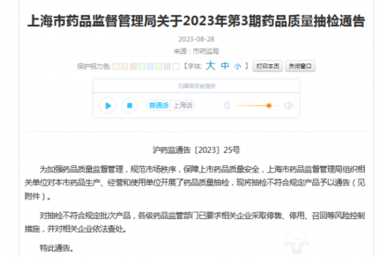 公告显示,对抽检不符合规定批次的产品,各级药品监管部门已要求相关企业采取停售、停用、召回等风险控制措施,并对相关企业依法查处。