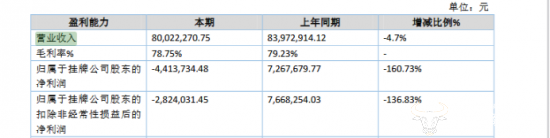 值得一提的是,福建天泉药业今年半年度实现营业收入约8002万元,同比下降4.7%;归属于挂牌公司股东的净利润约亏损441万元,同比下降160.73%;归属于挂牌公司股东的扣除非经常性损益后的净利润约亏损282万元,同比下降136.83%,由盈转亏。