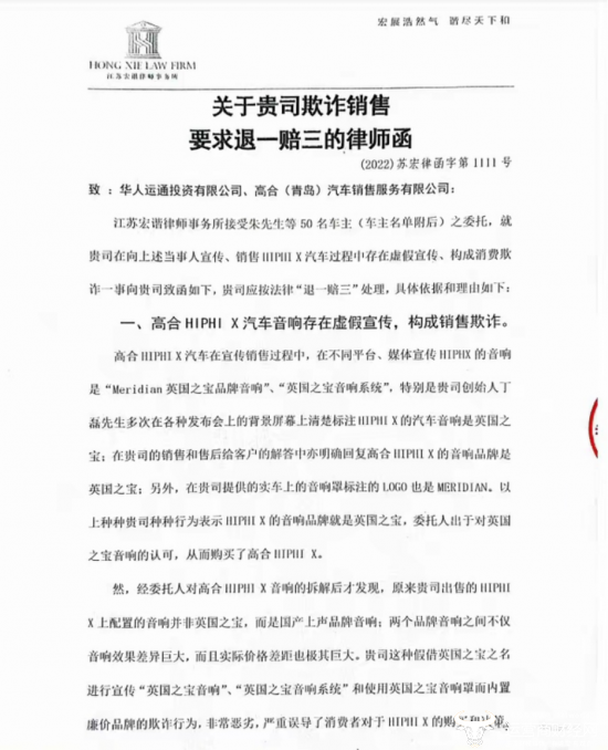 此外,运营商财经网注意到,高合HiPhi X曾被50名车主集体起诉销售欺诈。