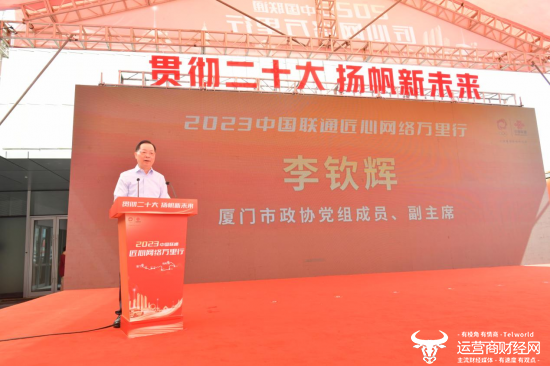 9月9日,以“贯彻二十大,扬帆新未来”为主题的2023中国联通匠心网络万里行活动在福建厦门正式拉开帷幕,中国联通副总经理唐永博出席致辞并为车队代表授予旗帜,厦门市政协副主席李钦辉出席并致辞,福建联通总经理周立松、福建省通信管理局一级巡视员洪晓旻、厦门市工信局局长周桂良、中国联通云网运营中心副总经理邢志超、福建联通副总经理杨暐,以及各级党政机关、合作伙伴等百余嘉宾出席启动仪式。配备中国联通最尖端通信保障装备的通信保障车队,将从数字中国的思想源头和实践起点福建出发,途径闽、浙、沪三地8城,开启一场彰显央企担当、展现创新实力、弘扬红色精神的万里之旅。